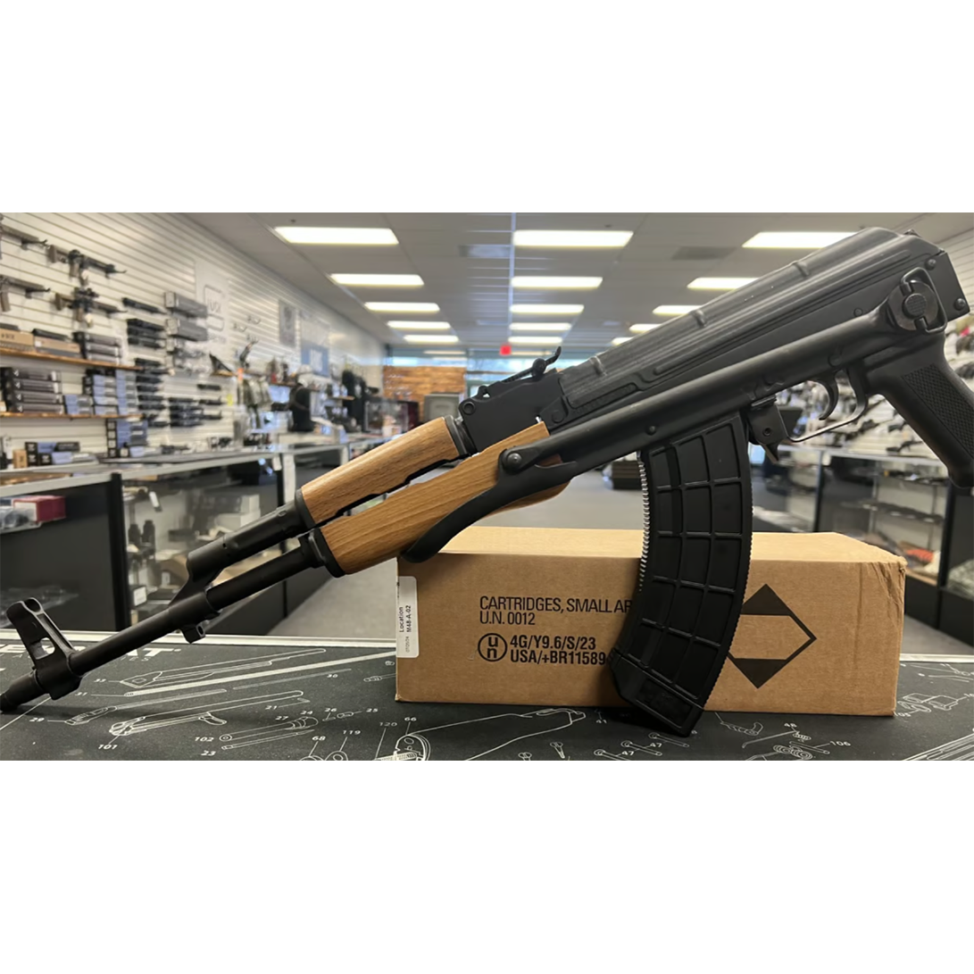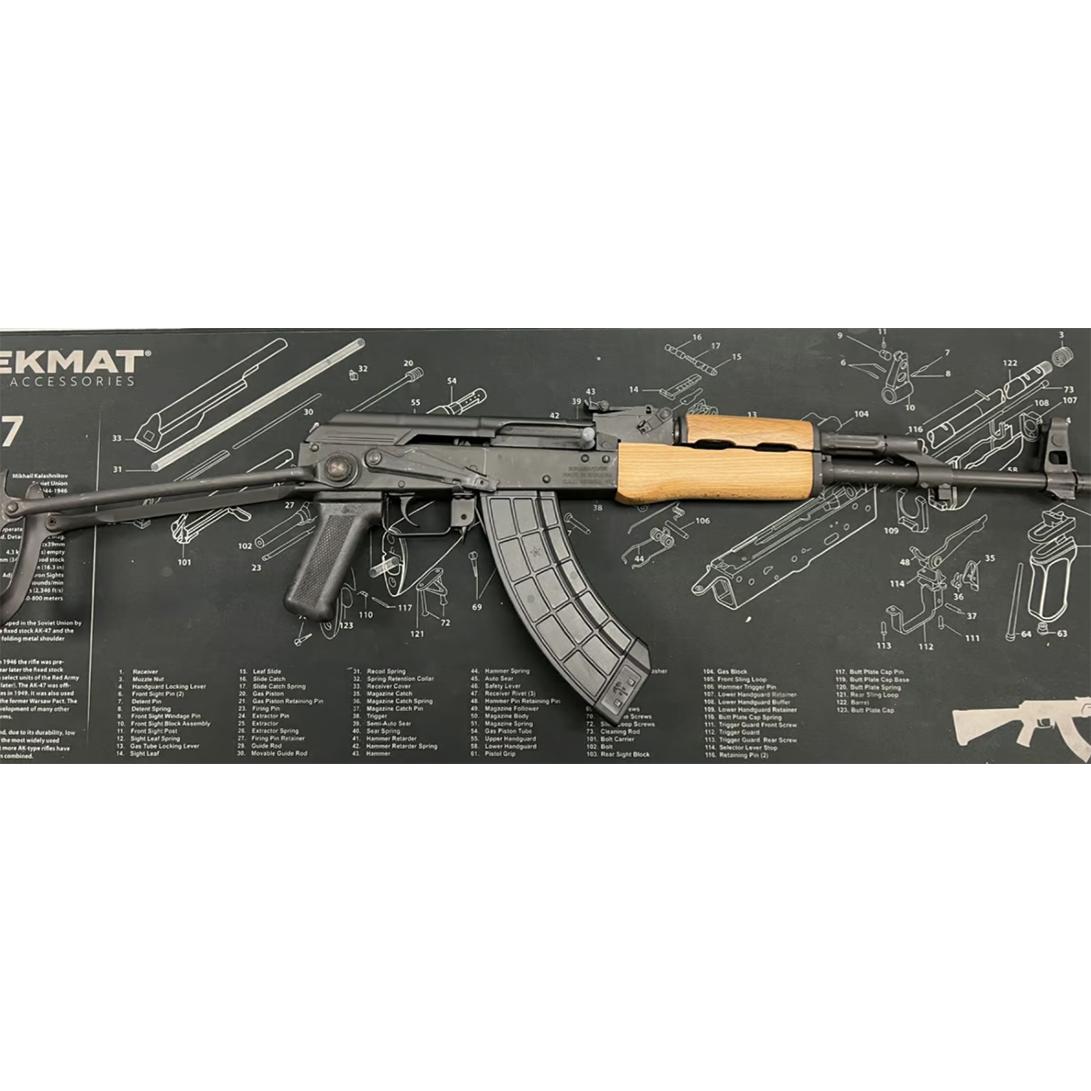The WASR-10 Underfolder is a newly manufactured Romanian-import AK-pattern rifle, highly sought after for its versatility and reliability. With the underfolding stock, it becomes a compact and portable option, ideal for various applications. When unfolded, it provides a stable shooting platform, enhancing accuracy for target and sport shooting.