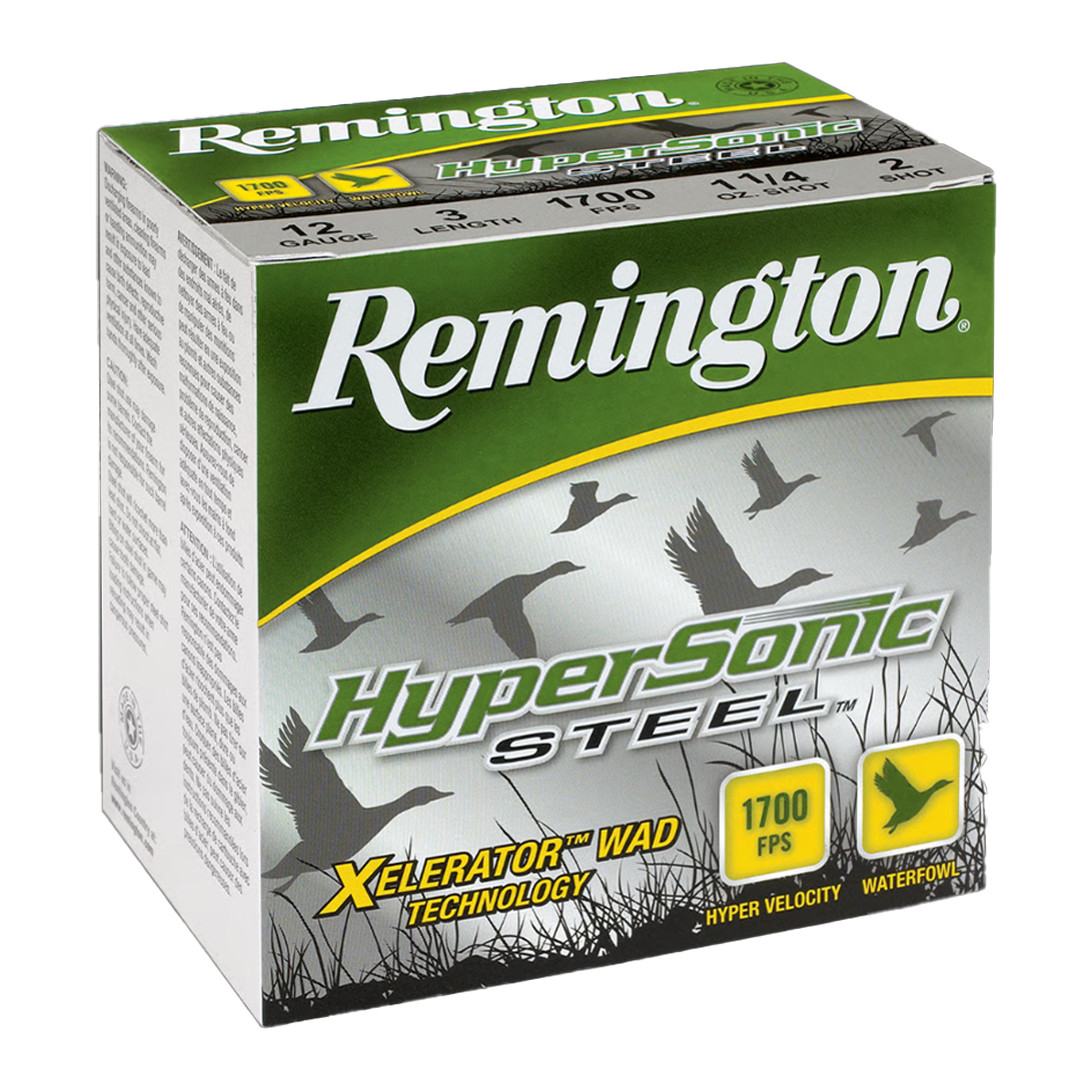 Remington HyperSonic Steel delivers unmatched velocity, helping hunters stay ahead of fast-flying ducks. At 40 yards, it reduces lead by 8 inches, ensuring more steel shot hits the head and neck for quicker kills and fewer misses. Engineered for maximum downrange energy, it takes lethality to the next level, allowing for more birds down with fewer shots, even at extended ranges.