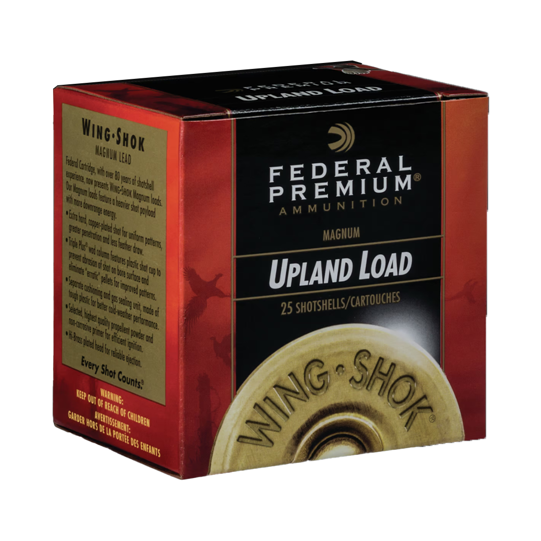 WingShok loads are designed for superior upland hunting performance, featuring Federal Premium copper-plated lead shot and high-quality components for consistent, deadly patterns. The magnum loads are buffered to deliver tighter shot patterns, reduced feather draw, and maximum penetration, ensuring effective and reliable performance in the field.