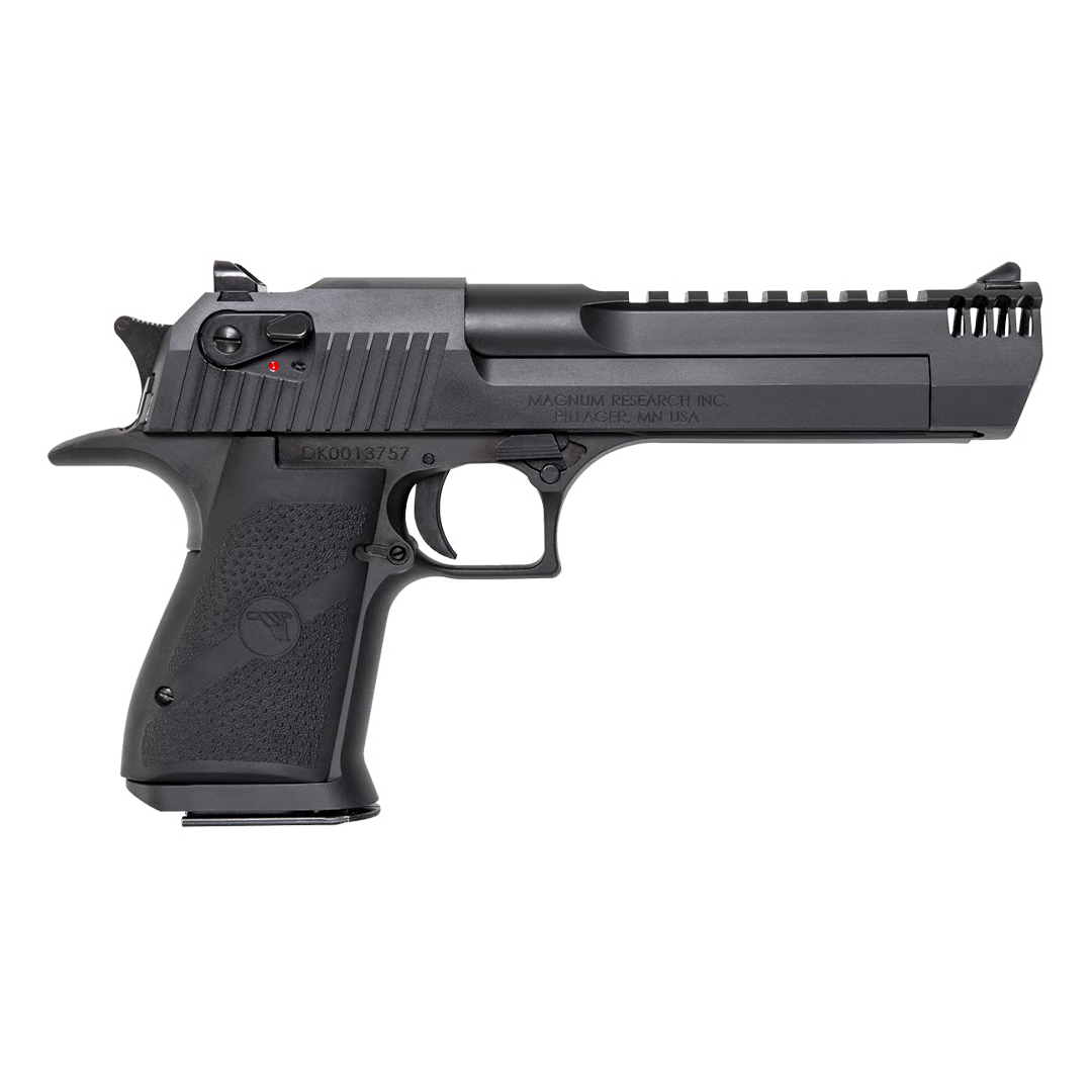 The Magnum Research Desert Eagle is a legendary line of semi-automatic handguns designed to handle some of the most powerful pistol cartridges, including .357 Magnum, .44 Magnum, and .50 AE. Built with a unique gas-operated system and rotating bolt—features more commonly associated with rifles—the Desert Eagle became the first handgun engineered to reliably manage these heavy-duty rounds. Depending on the model, it comes with either a 6-inch or 10-inch barrel, fitted with fixed combat sights, and an integrated rail for mounting optics of choice.