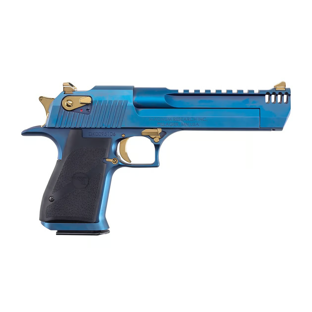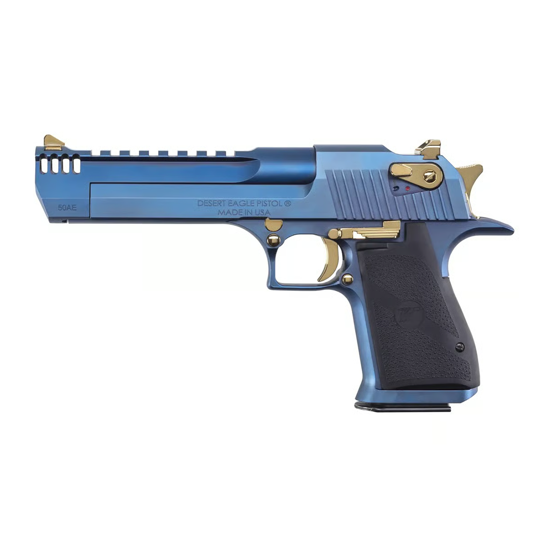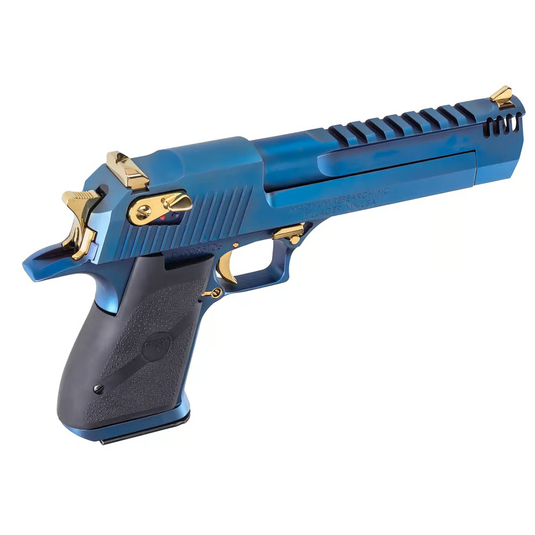 The Desert Eagle has always been a firearm that draws attention, and the new Carbo Blue finish elevates its presence even further. The deep blue PVD (Physical Vapor Deposition) coating delivers a striking appearance that stands out at the range or on display. Complementing the bold finish, the controls are finished in titanium gold, creating a refined contrast that enhances both elegance and power.